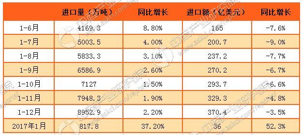 2016-2017年中國食用油籽進(jìn)口情況一覽表