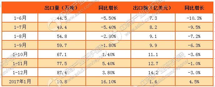 2017年1月中國食用油籽出口量為10.8萬噸,同比增長16.1%。2017年1月中國食用油籽出口金額為1.6億美元,增長4.5%。