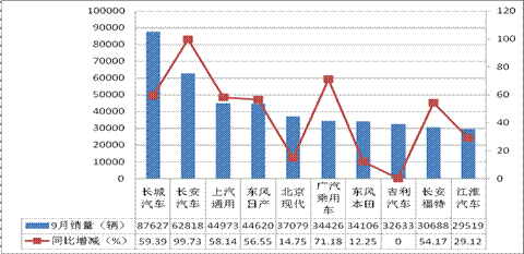 圖1:2016年9月全國SUV企業(yè)銷量前十企業(yè)