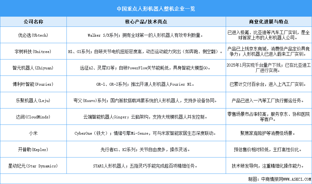 5.人形機(jī)器人重點(diǎn)企業(yè)名單