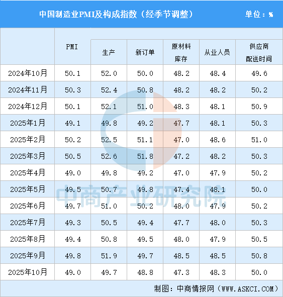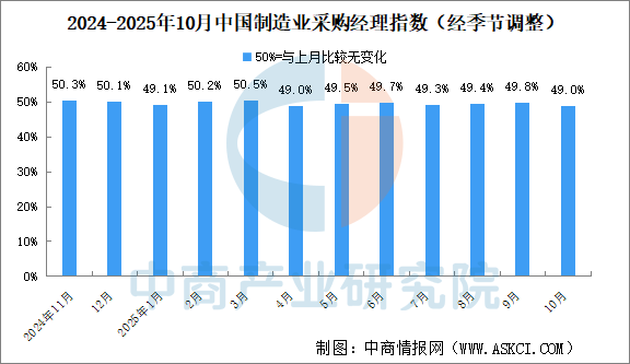 中商情報網訊:10月份,制造業(yè)采購經理指數(shù)(PMI)為49.0%,比上月下降0.8個百分點,制造業(yè)景氣水平有所回落。