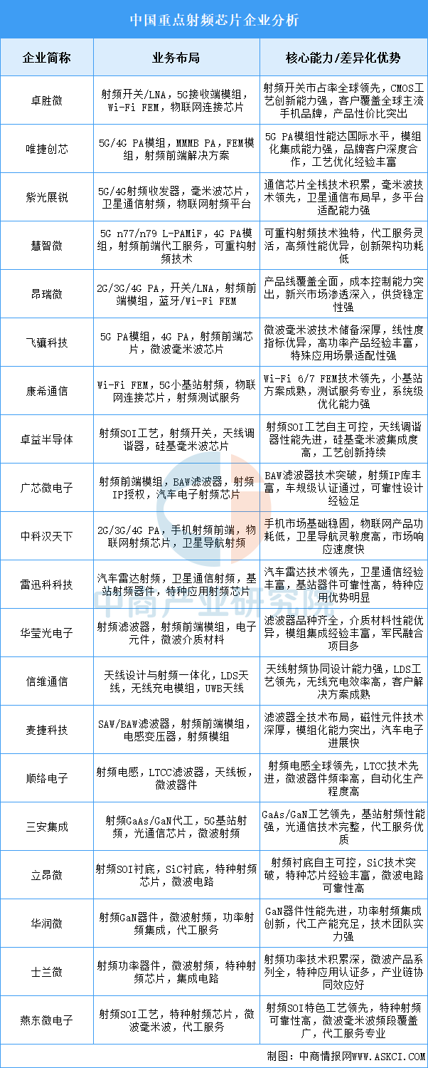 更多資料請(qǐng)參考中商產(chǎn)業(yè)研究院發(fā)布的《2025-2030年全球及中國射頻芯片行業(yè)深度研究報(bào)告》,同時(shí)中商產(chǎn)業(yè)研究院還提供產(chǎn)業(yè)大數(shù)據(jù)、產(chǎn)業(yè)情報(bào)、行業(yè)研究報(bào)告、行業(yè)白皮書、行業(yè)地位證明、可行性研究報(bào)告、產(chǎn)業(yè)規(guī)劃、產(chǎn)業(yè)鏈招商圖譜、產(chǎn)業(yè)招商指引、產(chǎn)業(yè)鏈招商考察&推介會(huì)、“十五五”規(guī)劃等咨詢服務(wù)。
