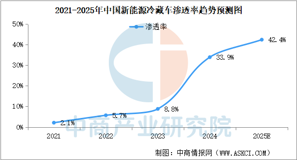 中國新能源冷藏車滲透率在政策、技術(shù)與市場需求的共同推動下快速提升。中商產(chǎn)業(yè)研究院發(fā)布的《2025-2030年中國冷藏車行業(yè)深度研究及發(fā)展前景投資預(yù)測分析報(bào)告》顯示,2024年中國新能源冷藏車滲透率為33.9%,同比增長25.1個百分點(diǎn)。2025年前三季度,中國新能源冷藏車滲透率為40.5%,同比增長18.13個百分點(diǎn)。中商產(chǎn)業(yè)研究院分析師預(yù)測,2025年中國新能源冷藏車滲透率將達(dá)42.4%。