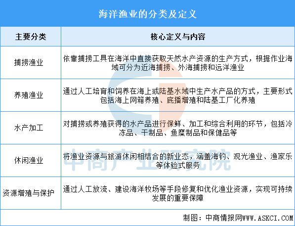 當(dāng)前海洋漁業(yè)正從傳統(tǒng)捕撈向多元化、可持續(xù)方向快速發(fā)展,產(chǎn)業(yè)形態(tài)由單一的捕撈生產(chǎn)逐步拓展為集養(yǎng)殖、加工、休閑和資源保護于一體的綜合體系,產(chǎn)業(yè)鏈持續(xù)延伸升級,資源養(yǎng)護與生態(tài)平衡日益受到重視,現(xiàn)代化、集約化養(yǎng)殖模式的比重不斷提升,推動整個產(chǎn)業(yè)向高質(zhì)量方向發(fā)展。