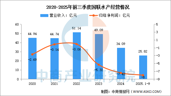 2025年前三季度實(shí)現(xiàn)營(yíng)業(yè)收入25.82億元,同比下降14.3%;歸母凈利潤(rùn)虧損8億元。2024年主營(yíng)產(chǎn)品包括水產(chǎn)食品、飼料,營(yíng)收分別占整體的94.80%、4.35%。