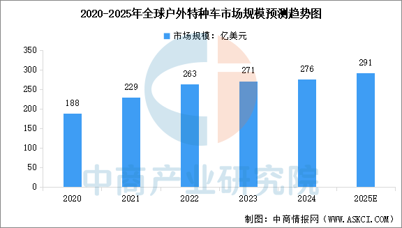 中商情報網訊:戶外特種車是一類專門針對戶外復雜場景打造的車輛,核心在于其具備強大的環(huán)境適應能力,能夠在各種嚴苛、復雜的戶外條件下正常行駛,發(fā)揮相應功能。戶外特種車主要分為全地形車和越野摩托車兩大類。全球戶外特種車市場正穩(wěn)步增長,中商產業(yè)研究院發(fā)布的《2025-2030年中國特種車輛行業(yè)市場調查及前景咨詢報告》顯示,全球戶外特種車市場規(guī)模從2020年的188億美元增長至2024年的276億美元,年復合增長率為10.1%。中商產業(yè)研究院分析師預測,2025年全球戶外特種車市場規(guī)模將達到291億美元。