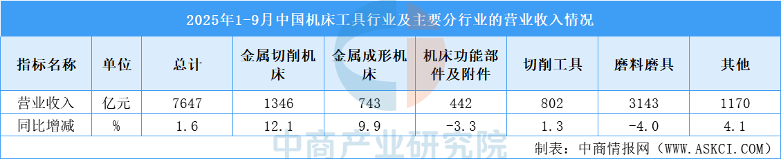 中商情報(bào)網(wǎng)訊:2025年1-9月,機(jī)床工具行業(yè)完成營(yíng)業(yè)收入7647億元,同比增長(zhǎng)1.6%,結(jié)束自2023年上半年以來的下行趨勢(shì),恢復(fù)增長(zhǎng)。主要分行業(yè)中,金屬切削機(jī)床和金屬成形機(jī)床分行業(yè)繼續(xù)保持增長(zhǎng),切削工具分行業(yè)由上半年同比下降0.6%恢復(fù)到同比增長(zhǎng)1.3%。
