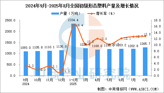 2025年8月全國初級形態(tài)塑料產(chǎn)量增長情況