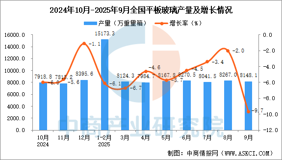 2025年9月全國平板玻璃產(chǎn)量增長情況