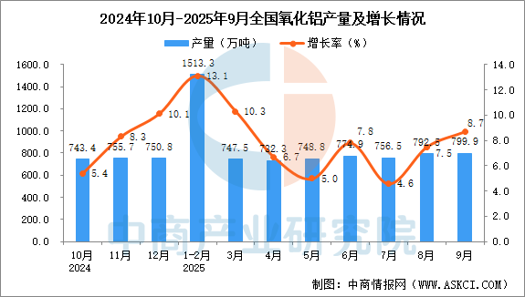2025年9月全國氧化鋁產(chǎn)量增長情況