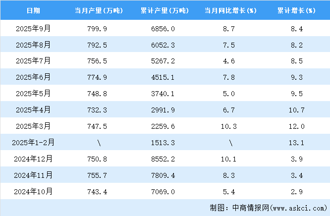 中商情報(bào)網(wǎng)訊:據(jù)中商產(chǎn)業(yè)研究院數(shù)據(jù)庫,2025年9月全國氧化鋁當(dāng)月產(chǎn)量與去年同期相比增長。2025年9月全國氧化鋁產(chǎn)量為799.9萬噸,同比增長8.7%。2025年1-9月全國氧化鋁產(chǎn)量6856.0萬噸,同比增長8.4%。