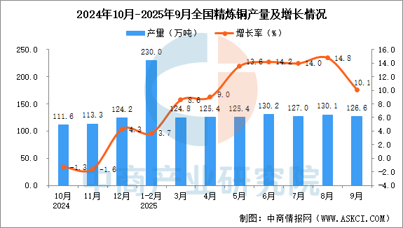 2025年9月全國精煉銅產(chǎn)量增長情況