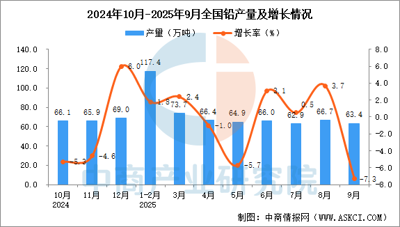 2025年9月全國鉛產(chǎn)量增長情況