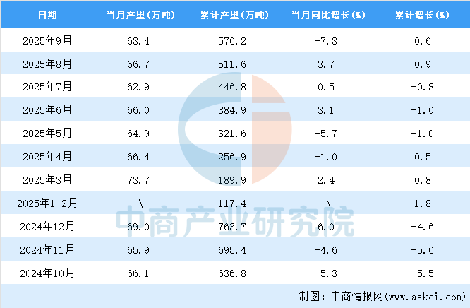 中商情報(bào)網(wǎng)訊:據(jù)中商產(chǎn)業(yè)研究院數(shù)據(jù)庫,2025年9月全國鉛當(dāng)月產(chǎn)量與去年同期相比下降。2025年9月全國鉛產(chǎn)量為63.4萬噸,同比下降7.3%。2025年1-9月全國鉛產(chǎn)量為576.2萬噸,同比增長0.6%。