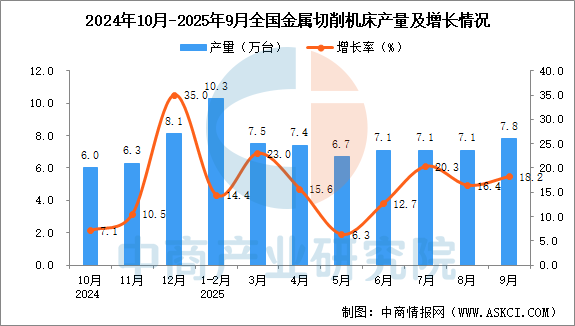 2025年9月全國金屬切削機床產(chǎn)量增長情況