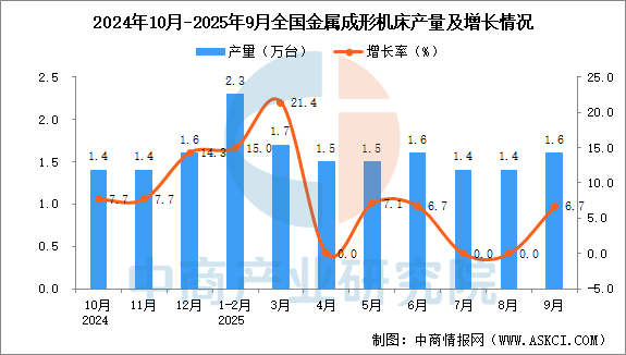2025年9月全國金屬成形機床產(chǎn)量增長情況