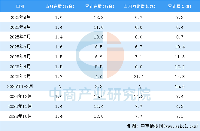 中商情報網(wǎng)訊:據(jù)中商產(chǎn)業(yè)研究院數(shù)據(jù)庫,2025年9月全國金屬成形機床當月產(chǎn)量與去年同期相比增長。2025年9月全國金屬成形機床產(chǎn)量為1.6萬臺,同比增長6.7%。2025年1-9月全國金屬成形機床產(chǎn)量為13.2萬臺,同比增長7.3%。