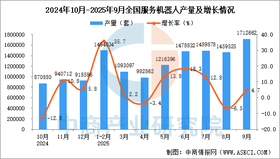 2025年9月全國(guó)服務(wù)機(jī)器人產(chǎn)量增長(zhǎng)情況