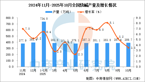2025年10月全國(guó)燒堿產(chǎn)量增長(zhǎng)情況