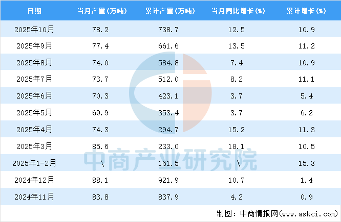 2025年10月全國合成橡膠產(chǎn)量增長情況