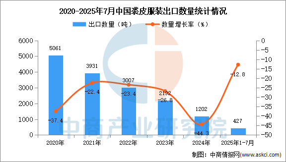 2025年1-7月中國裘皮服裝出口數(shù)據(jù)統(tǒng)計(jì)分析:出口量同比下降12.8%