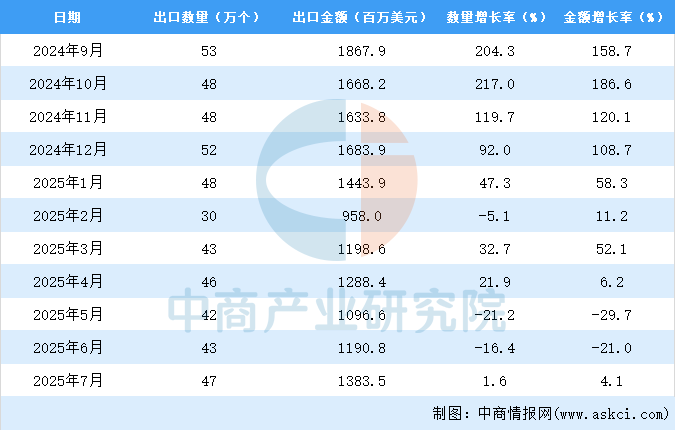 2025年1-7月中國集裝箱出口數(shù)據(jù)統(tǒng)計(jì)分析:出口量同比增長5.4%