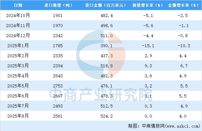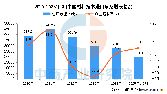 2025年1-8月中國材料技術進口數(shù)據(jù)統(tǒng)計分析:進口量19568噸