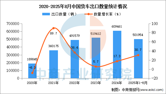 2025年1-8月中國貨車出口數(shù)據(jù)統(tǒng)計(jì)分析:出口量同比增長30.7%