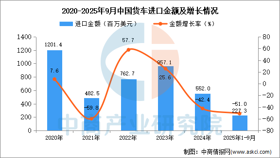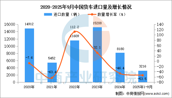 2025年9月中國貨車進(jìn)口量及金額增長(zhǎng)情況