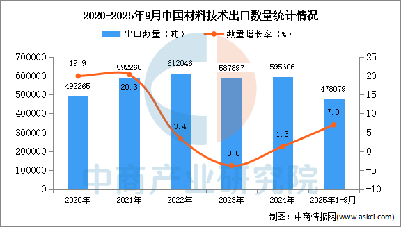 2025年9月中國材料技術(shù)出口量及金額增長情況