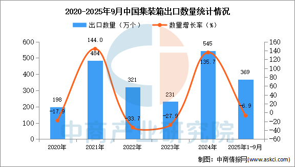 中商情報網(wǎng)訊:據(jù)中商產業(yè)研究院數(shù)據(jù)庫顯示,2024年中國集裝箱出口量309萬個,同比增長61.8%。最新數(shù)據(jù)顯示,2025年1-9月中國集裝箱出口量369萬個,同比下降6.9%。