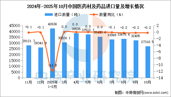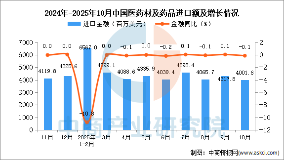 2025年10月中國(guó)醫(yī)藥材及藥品進(jìn)口量及金額增長(zhǎng)情況