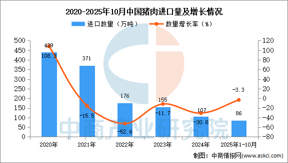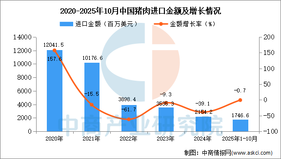 2025年10月中國豬肉進(jìn)口量及金額增長情況