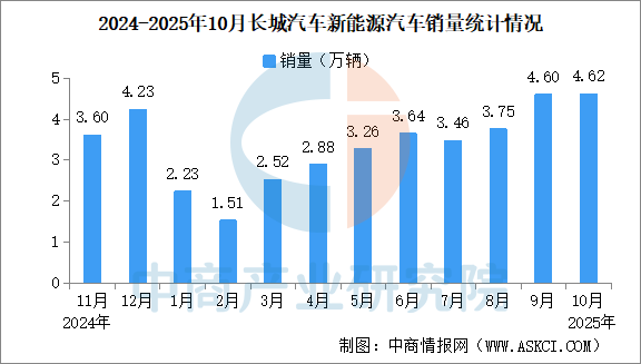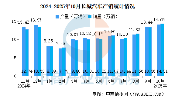 2025年10月長城汽車產(chǎn)銷情況:新能源汽車銷量同比增長44.06%(圖)