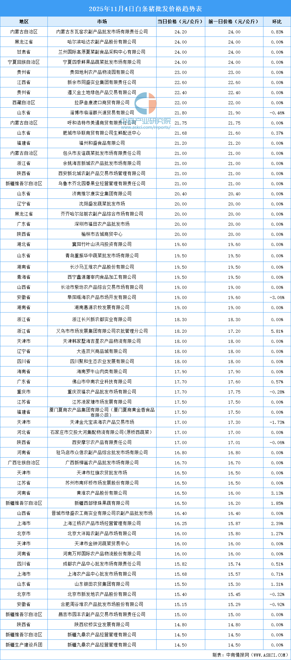 2025年11月5日全國各地最新白條豬價(jià)格行情走勢(shì)分析